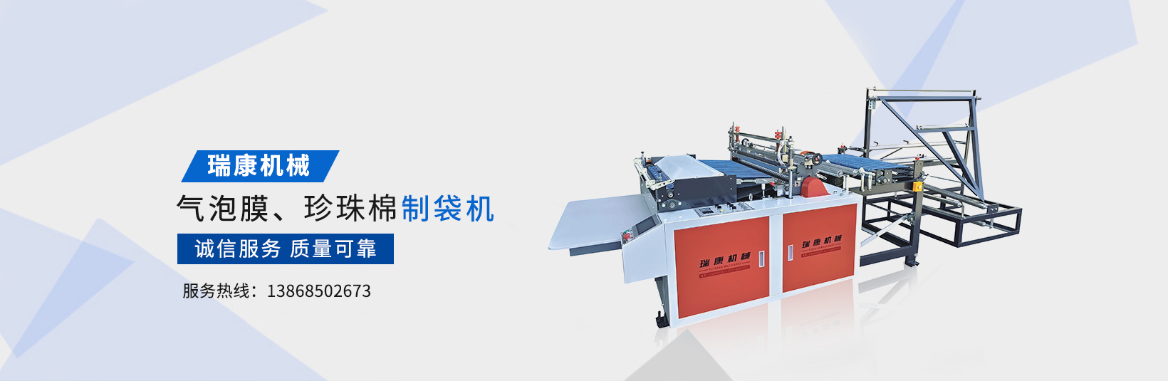 溫州瑞康機械有限公司(www_wzruikang_com.biotiful.cn)主要生產氣泡膜機,快遞袋制袋機,包裝機,制袋機等設備。瑞康機械是國內生產塑料軟包裝系列機械設備的專業廠家之一。產品質量可靠、誠信服務,深受用戶好評,市場占有率節節攀升。